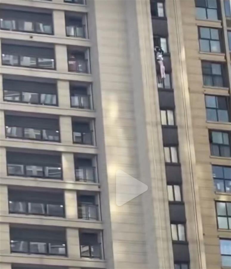 事发苏州鸿文路旁一小区内。有居民拍下了当时惊险的一幕。视频显示,女子身悬在一栋高楼窗外,窗内有人将其拉住,但不知何故,窗内的人没抓牢,女子滑脱缓缓向下坠去。就在此时,楼下的窗口有人伸出手,将女子一把抱入楼内。