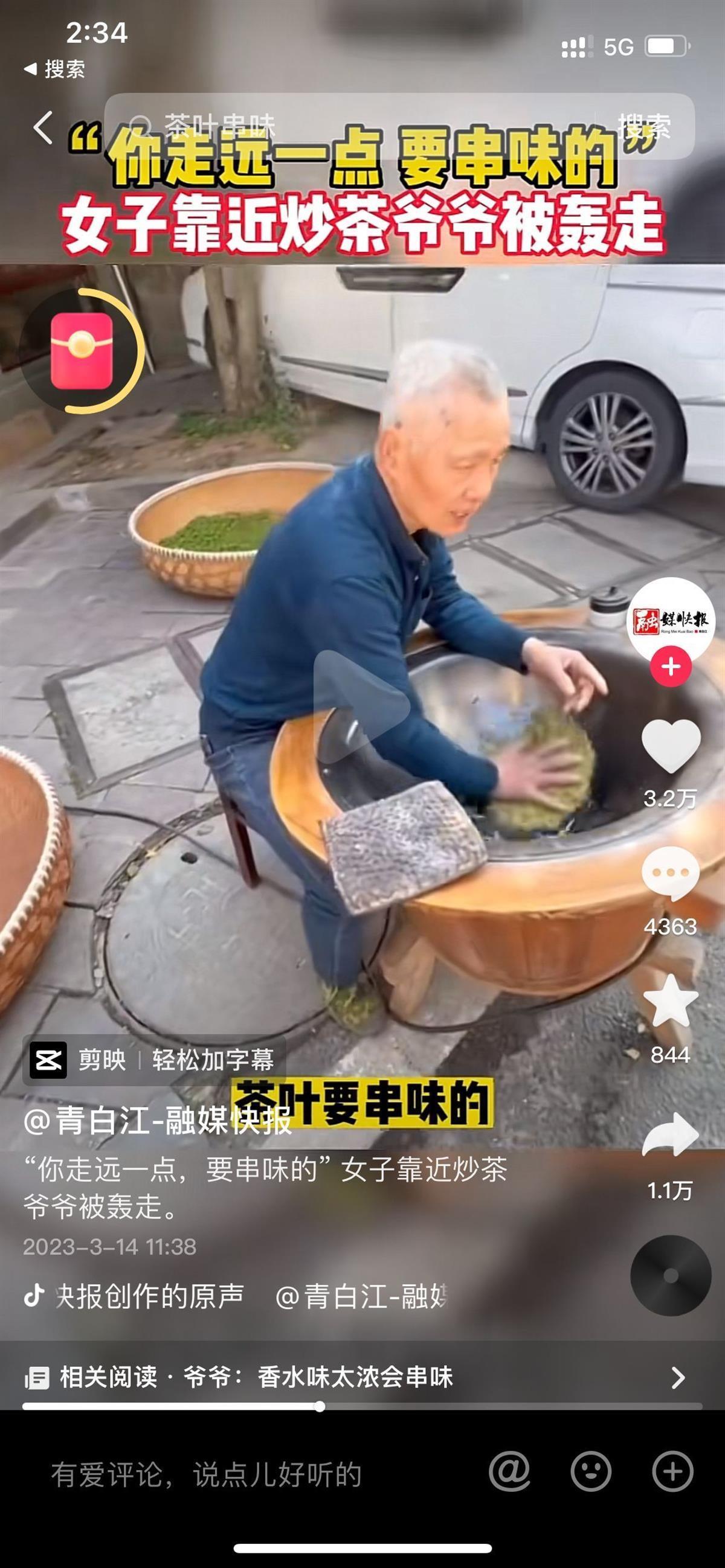 对此,有网友点赞炒茶爷爷是个行家,称他很刚,是对茶叶的尊重。不过,也有网友认为,这位炒茶爷爷的行为有些过分。如果嫌弃路人香水味太重,就不应该在路边炒茶。