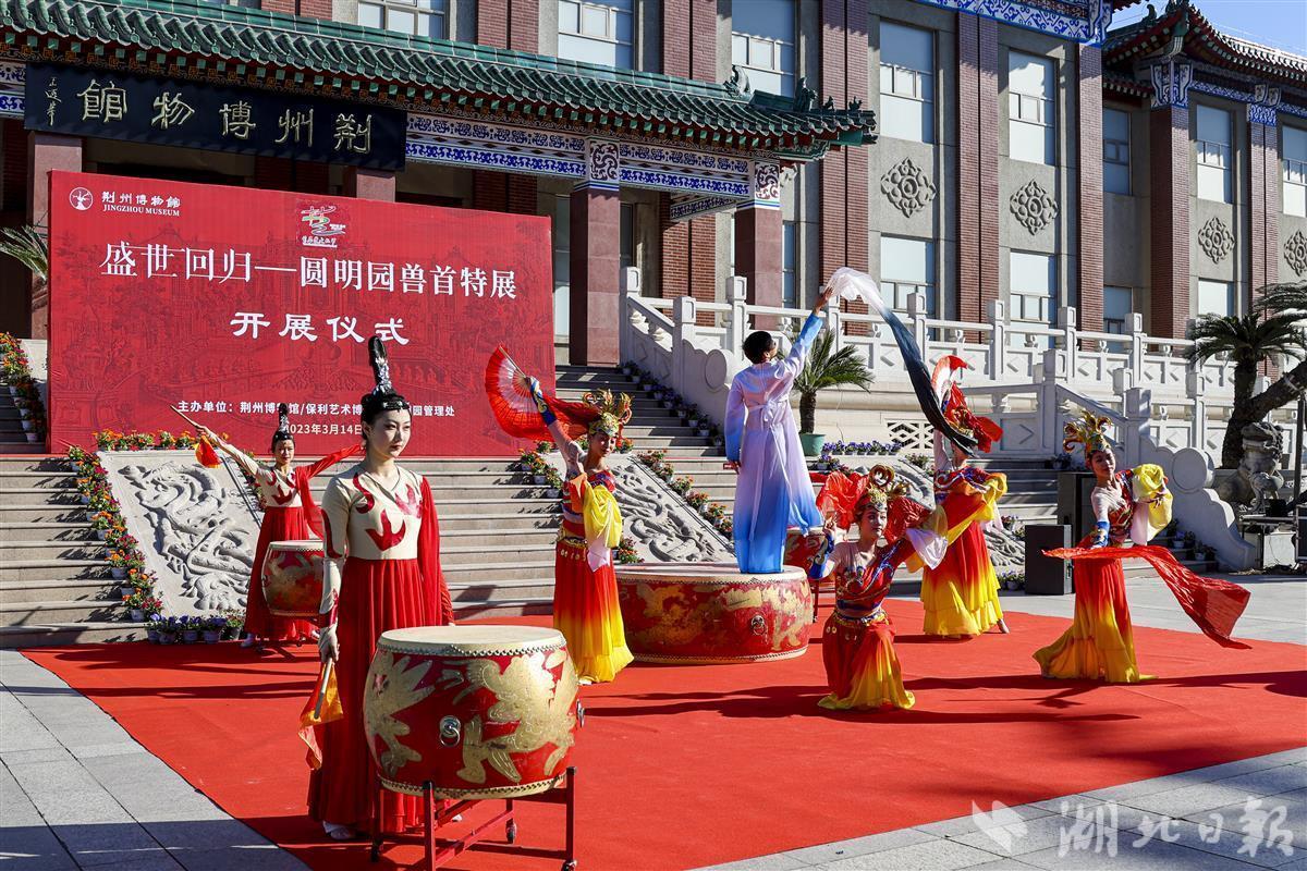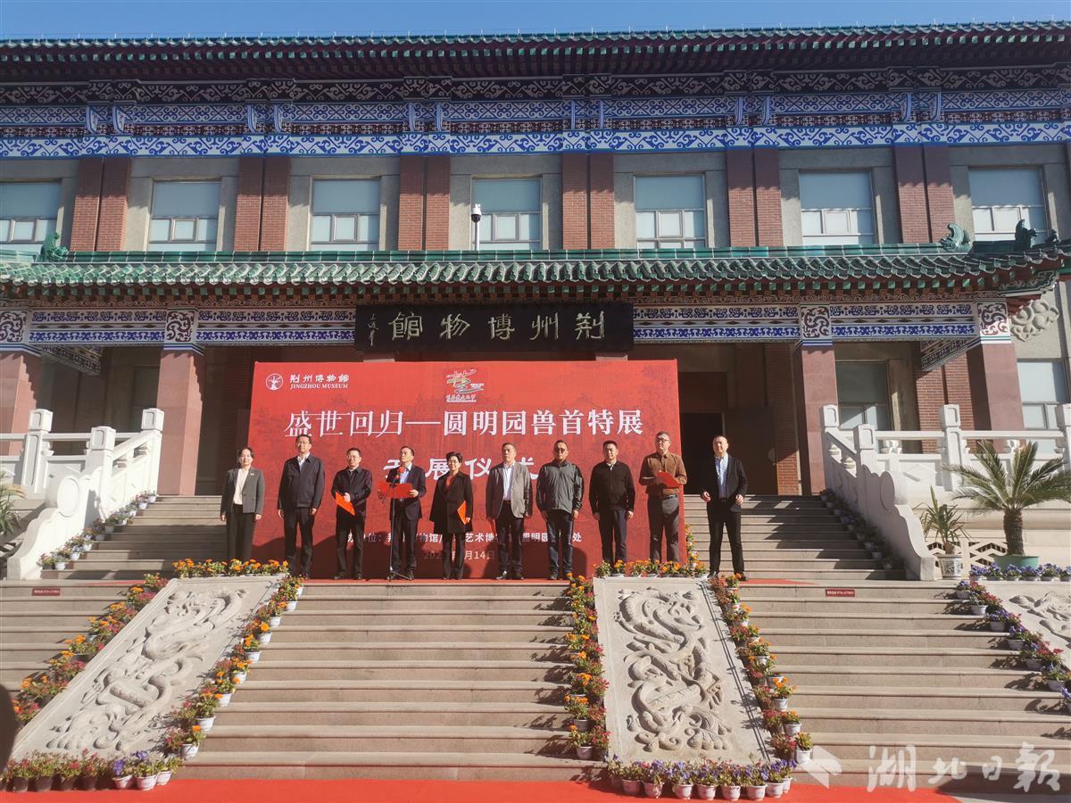 湖北日报讯(记者孟静、通讯员陈冬冬、张梦瑶)3月14日,“盛世回归——圆明园兽首特展”开展仪式在荆州博物馆举行,圆明园十二生肖铜兽首中的牛首、虎首、马首、猴首、猪首齐聚荆州博物馆,这也是五尊国宝首次在湖北同台展出。