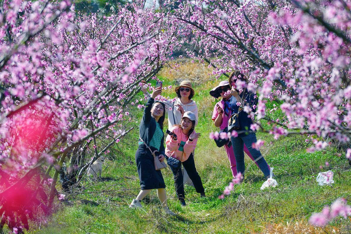 为推进乡村旅游发展,近年来,武汉市新洲区三店街做大“桃文章”,发展“桃经济”挖掘桃李文化、民俗文化、地方美食休闲文化,通过农业加生态加旅游等模式,积极推进农旅融合发展,以花为媒,做强美丽经济,实现乡村振兴。