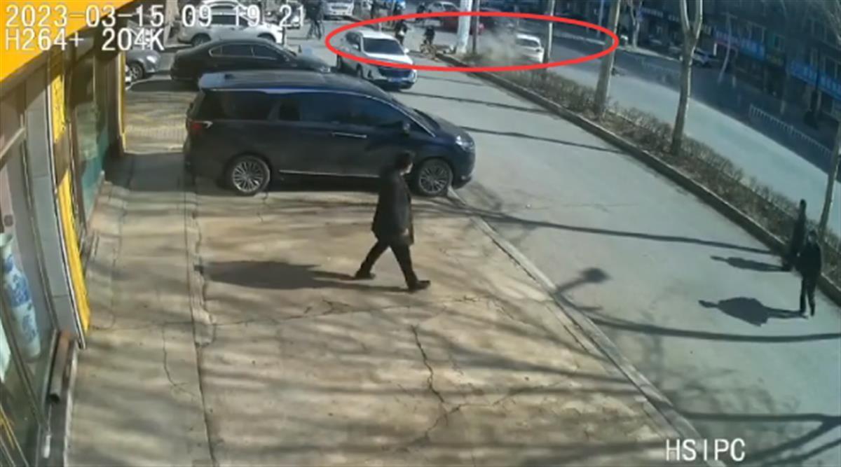 网友发布的监控视频显示,3月15日上午9时许,有几人在路边驻足等待,此处是一个小路口,几人的后方有多辆汽车停泊。突然一辆白车从后方驶来,速度越来越快,其中几人躲闪不及被撞,白车随后撞上护栏,又迂回开到了路边的绿化带,在路中间转了一个圈。