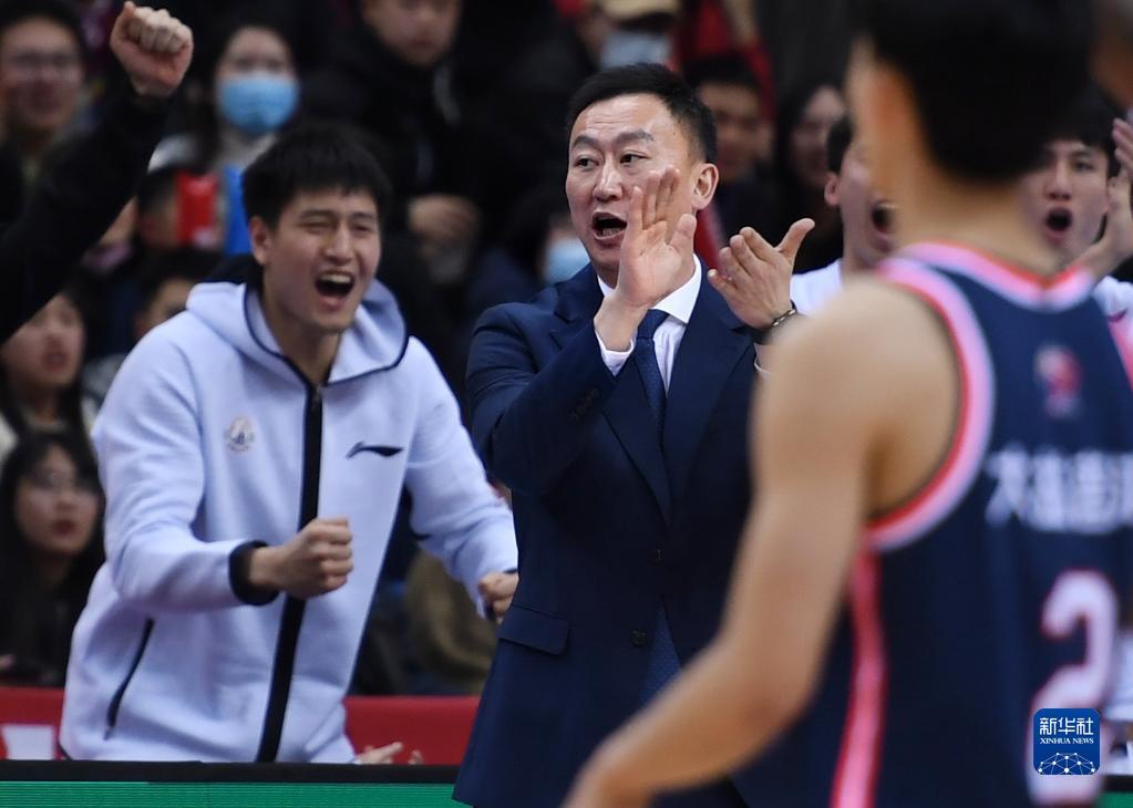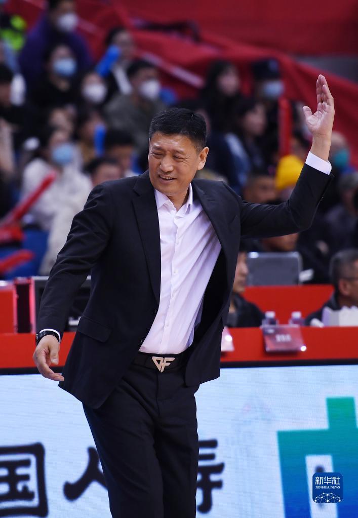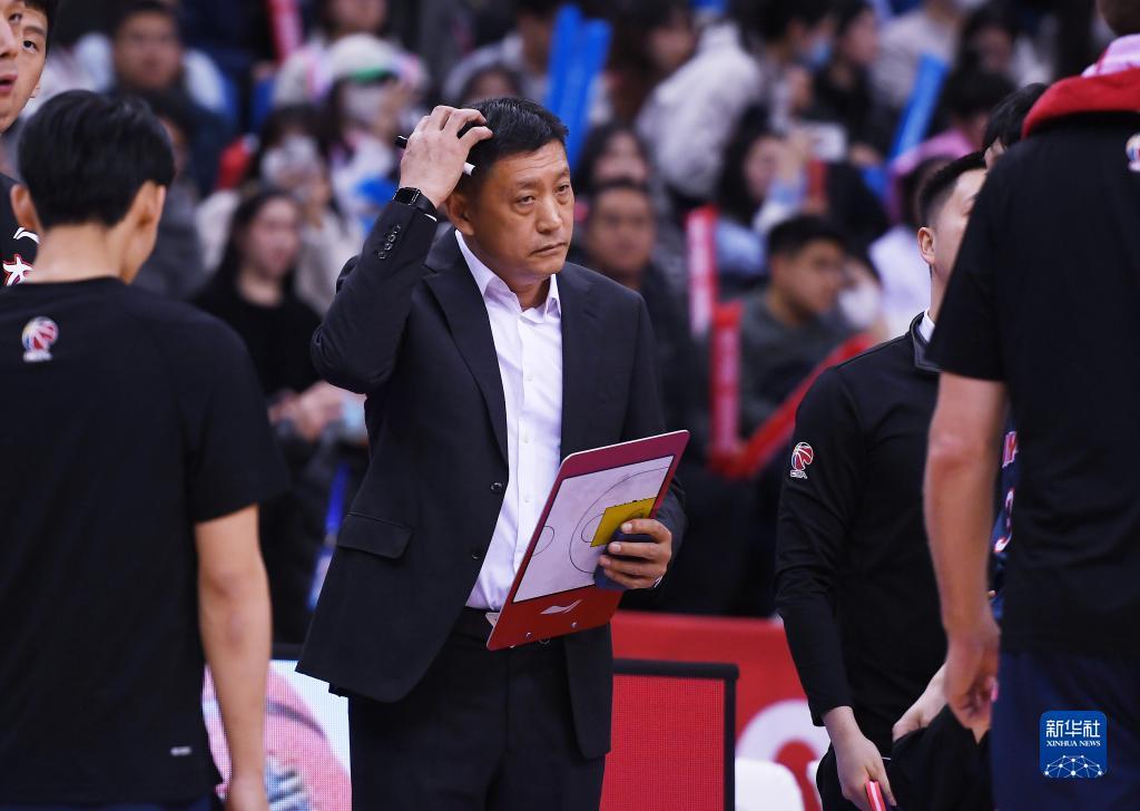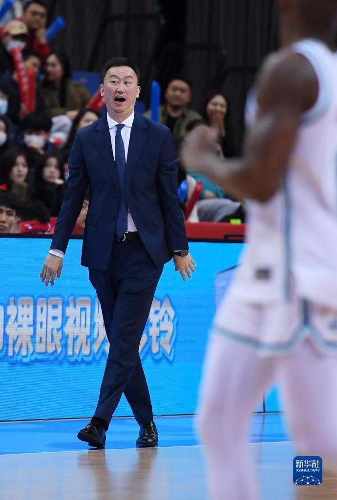3月15日,青岛国信水产队主教练刘维伟在比赛中指挥。新华社记者 李紫恒 摄