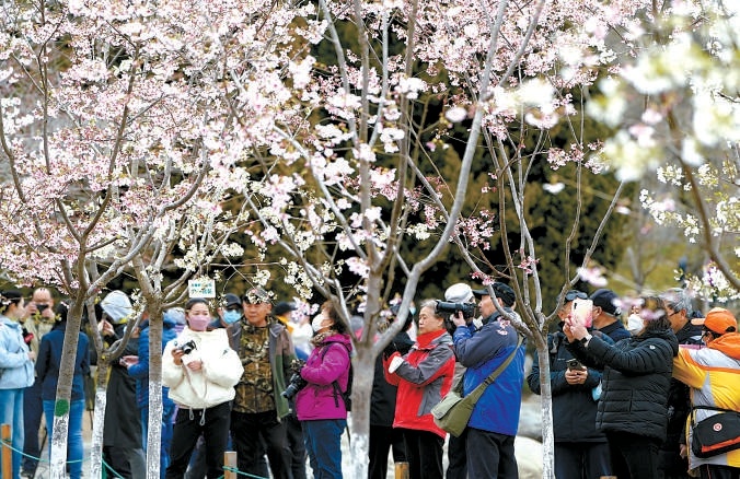 今年樱花暨春花观赏季期间,玉渊潭公园首次实行全票种预约入园。