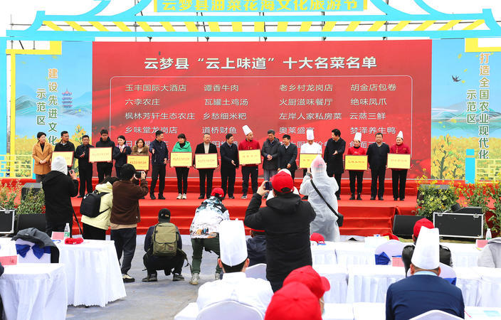 开幕式上,发布了精品课程研学线路、重点皮影戏剧目;展示了云梦十大特色农产品;出席活动的省、市、县领导为云梦县“云上味道”十大名菜、云梦县2022年度“村庄清洁行动”先进村(社区)获奖单位颁了奖。
