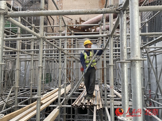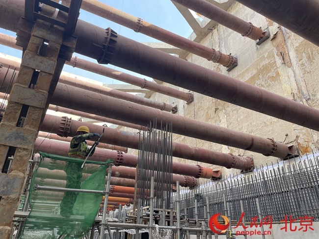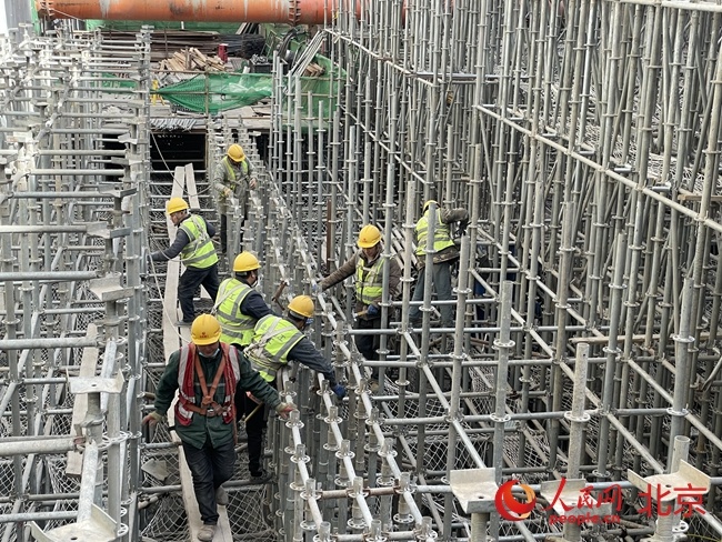 16日下午,记者在22号线08标管庄站施工现场看到,在深31米的基坑内,工人们正在进行钢筋绑扎、混凝土浇筑等工作。据了解,22号线08标包含“一站一区间”,即管庄站和管庄—永顺区间。北京建工集团有限责任公司22号线08标项目经理尹伟告诉记者:“目前管庄站已进入主体结构施工阶段,预计今年9月实现车站主体结构封顶。此外,计划6月实现区间盾构始发。”