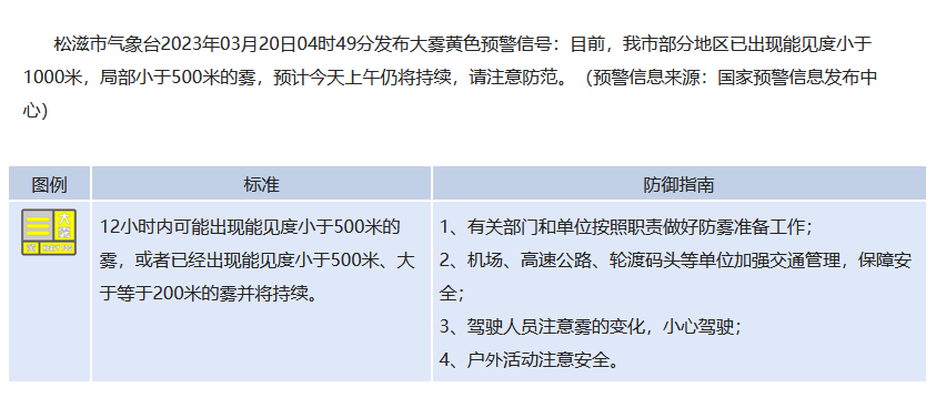湖北省松滋市发布大雾黄色预警