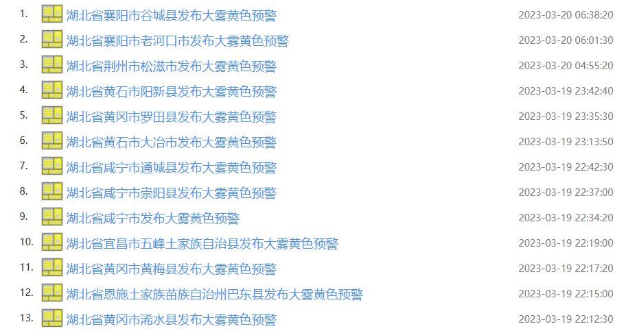 湖北省咸宁市发布大雾黄色预警