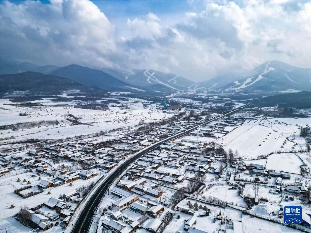 2023年1月19日,白雪覆盖的吉林市永吉县北大湖镇南沟村(无人机照片)。