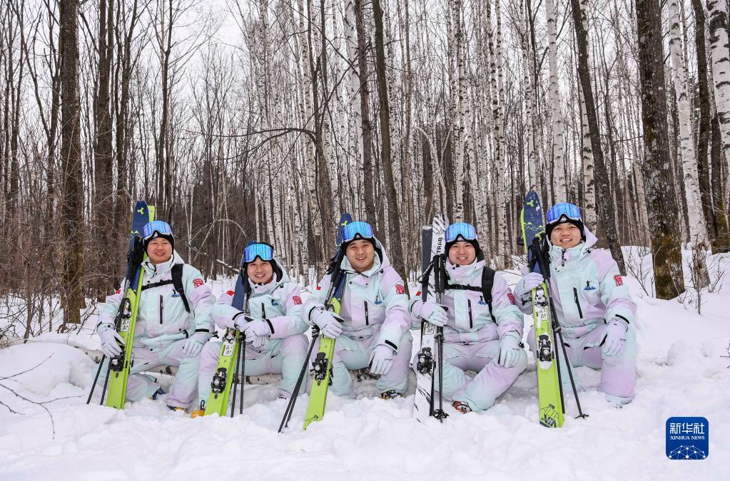 这是国家级滑雪运动健将宋成珉(左二,资料照片)。