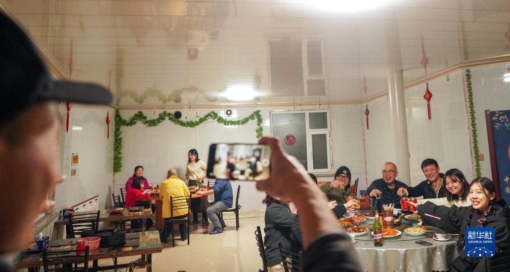 这是2023年1月21日,邵锋在自家民宿里为家人和雪友合影。