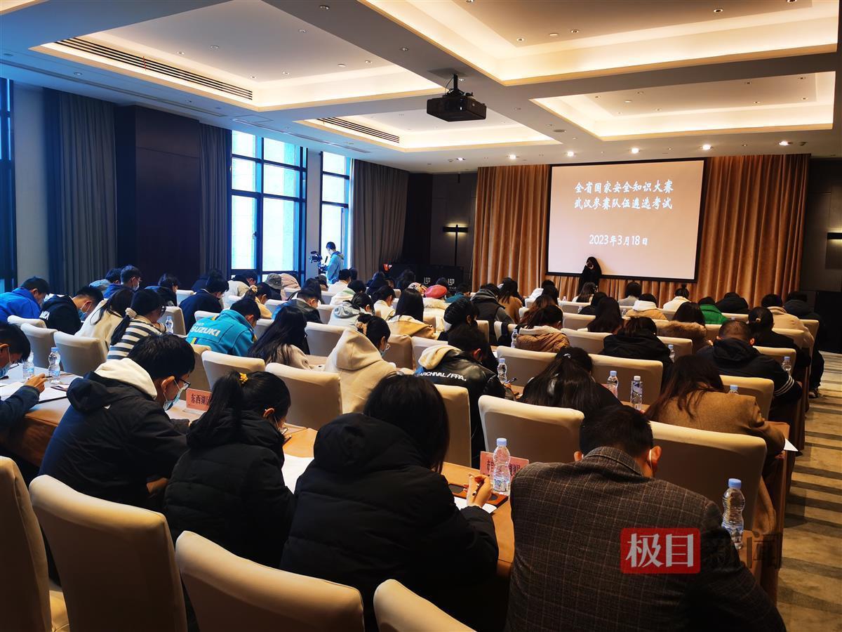3月18日,湖北省国家安全知识大赛武汉参赛队伍遴选考试在武汉会议中心举行,来自武汉市各区、各有关部门和单位的26支队伍(共108人)参加考试。本次考试旨在宣传贯彻党的二十大精神和总体国家安全观,拟选拔向全省国家安全知识大赛推荐的参赛队伍。全部试题包括“单选题”“多选题”“判断题”“填空题”等四个类型,共100道(每题1分),主要涉及党的二十大精神、总体国家安全观等内容。