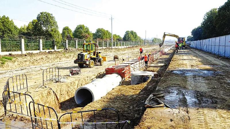 “去年10月,施工队进场,先后完成了原道路地表清理及强弱电线杆迁移工作,目前正在开展清淤换填、铺设雨污管网等工作,接下来将进行填路基、铺水稳层和沥青等工程。”六草屋大道项目负责人在现场忙碌指挥调度。