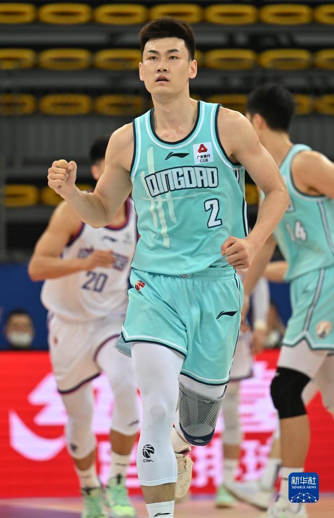 3月20日,青岛国信水产队球员王睿泽在比赛中庆祝得分。新华社记者 李然 摄