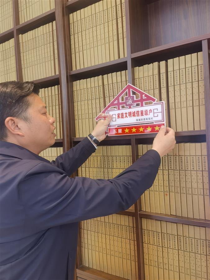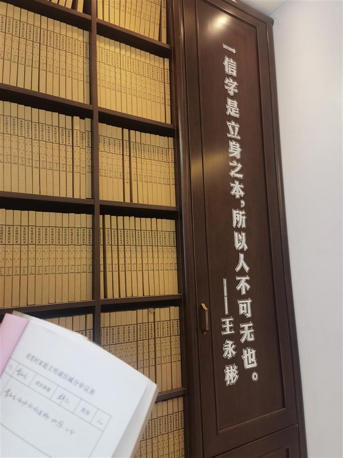 这两年,村里建起了“诚信档案馆”:村委会的一整面墙壁被改造成书架,存放着该村1128户村民的诚信档案;村民扫描二维码,手机屏幕便弹出家庭诚信积分。