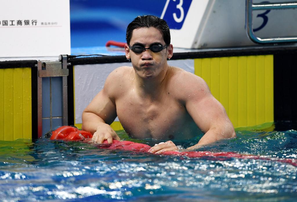 3月19日,王浩宇在全国春季游泳锦标赛上以47秒89的成绩获得男子100米自由泳第一名。新华社记者李紫恒摄