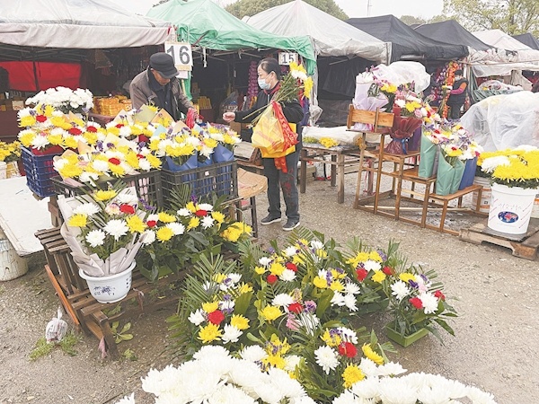 摊贩王爹爹介绍,近日,来陵园扫墓的人陆陆续续增多了。近些年,因为大力提倡绿色祭祀、环保祭祀,购买鲜花祭祀的人越来越多,菊花的销量也有比较明显的提升。