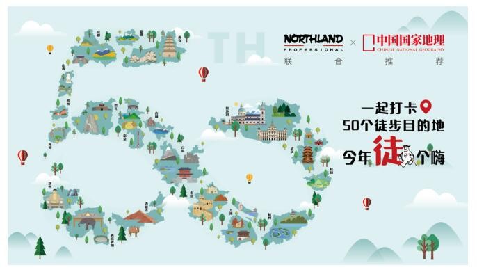 为庆祝品牌50周年,NORTHLAND诺诗兰还与中国国家地理联合评选并发布了50个徒步目的地,作为奥地利家喻户晓的户外品牌,NORTHLAND诺诗兰同国内权威地理杂志一起为广大徒步、户外爱好者深度评选出最具魅力的徒步目的地,开启路线探索。
