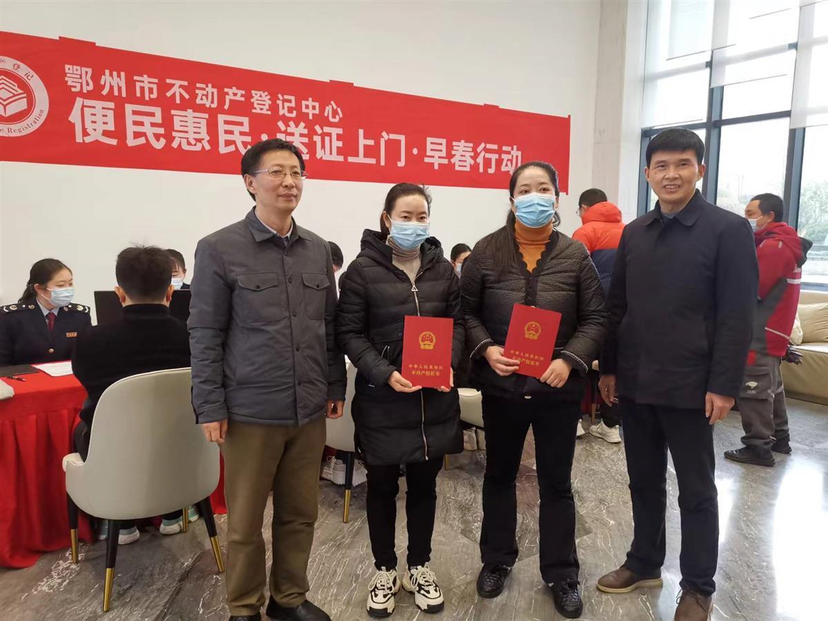 据悉,本次鄂州市开展的“便民惠民送证上门”早春行动,是2023年湖北省不动产开展送证上门活动以来,鄂州市进驻的第一个地产项目,现场办理发放的证件也是鄂州市第一本不动产权属登记证明。