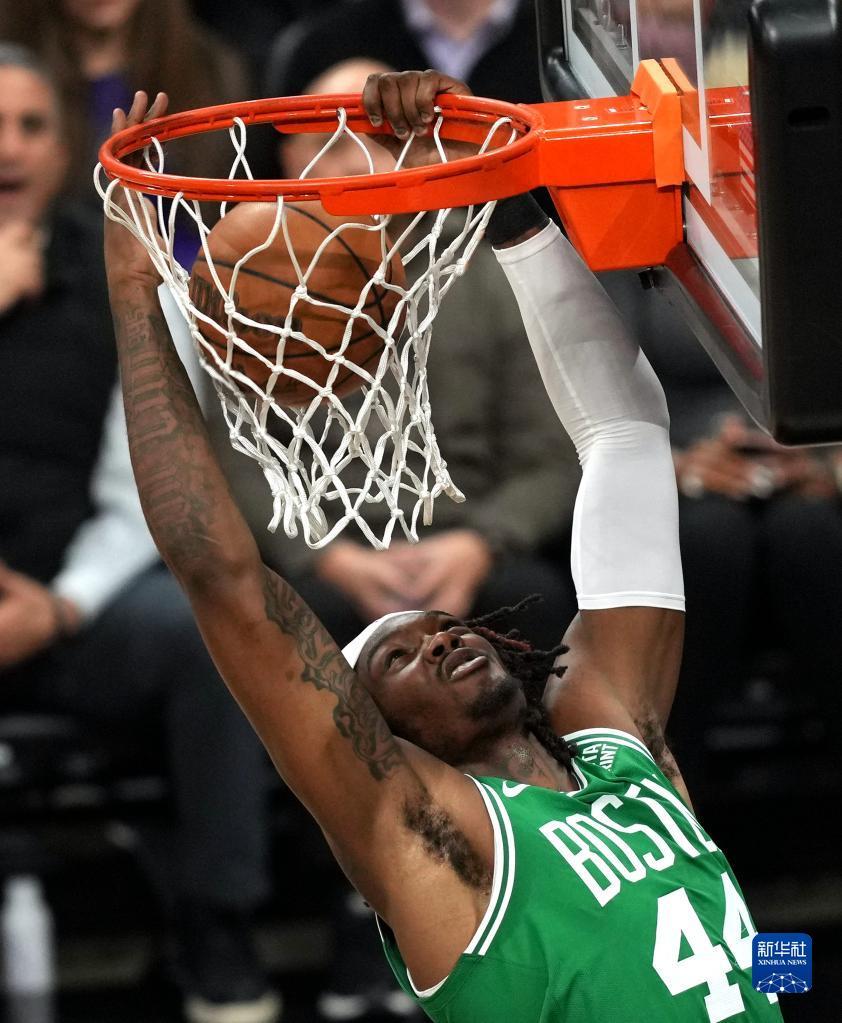 3月21日,凯尔特人队球员威廉姆斯三世在比赛中扣篮。新华社记者 吴晓凌 摄
