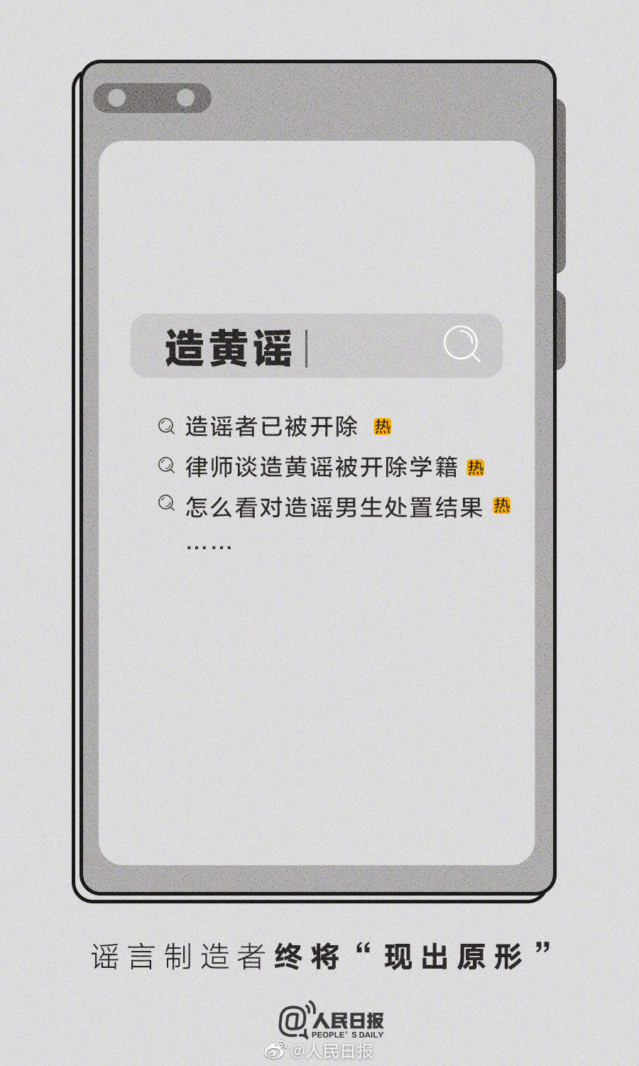 近日,多起造黄谣、P图牟利事件引发关注。按键伤人有多可怕?一句不负责任的谣言,可能带来永难磨灭的巨大伤害。他人权益不该成为造谣者阴暗内心的代价,他人隐私也不应成为牟利工具。警示造谣者:网络不是法外之地,编造谣言终将“现出原形”。