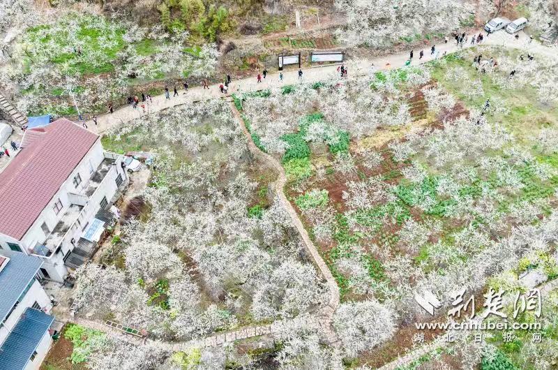荆楚网(湖北日报网)讯(通讯员李尧鑫、王钰雯)3月22日,宜昌市秭归县沙镇溪镇高潮村千亩李花迎春怒放,恩施、宜昌等各地游客纷至沓来,慕名参加高潮村第三届李花节。
