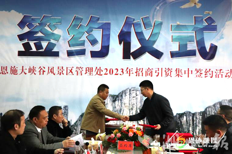 3月6日,恩施大峡谷风景区管理处举行2023年第一季度招商引资项目集中签约仪式,与7家公司进行签约,总签约9.25亿元,大峡谷风景区管理处招商引资夺得“开门红”,为建州40年献礼。