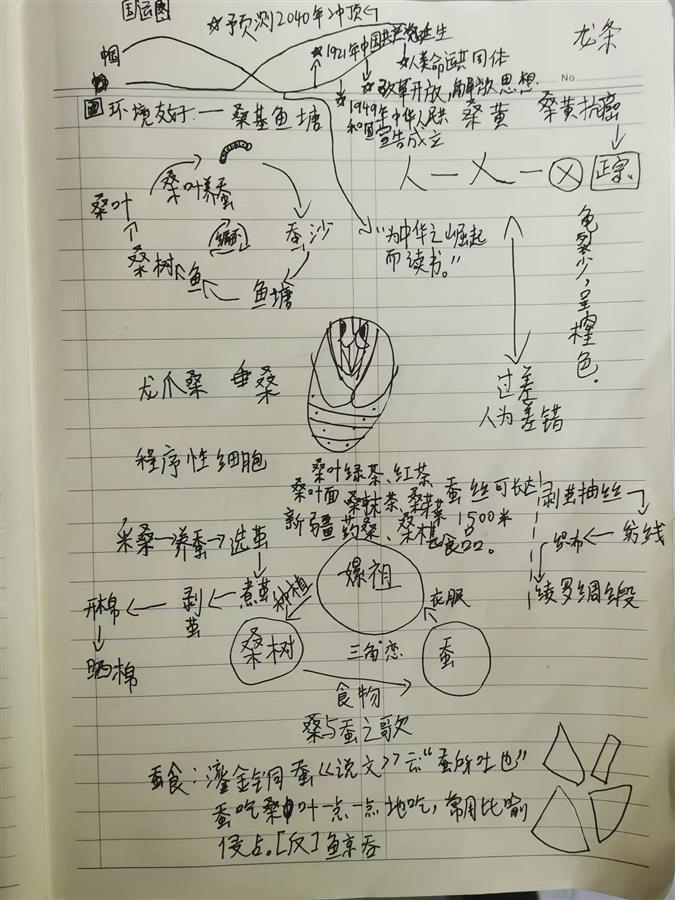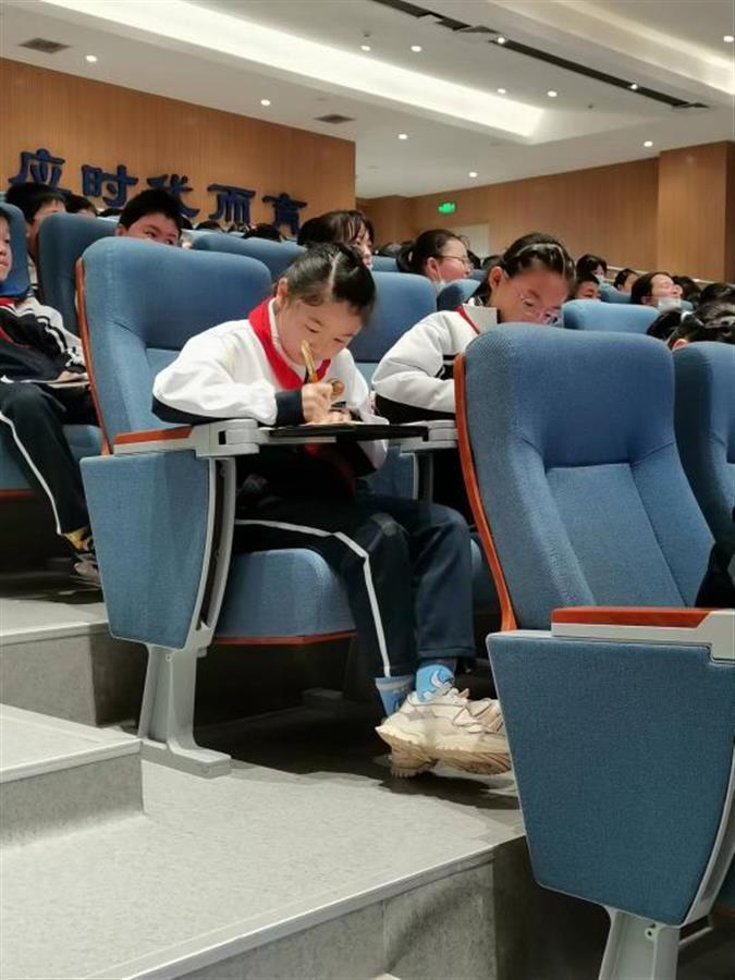 专家讲得妙趣横生,孩子们也认认真真地记下笔记。有的孩子还模仿着莫荣利博士展示的图片,尝试画出蚕的身体结构。莫荣利用八四消毒液展示了蚕丝鉴别小实验,当看到真蚕丝放进八四消毒水慢慢溶解后,孩子们情不自禁地发出惊叹声。