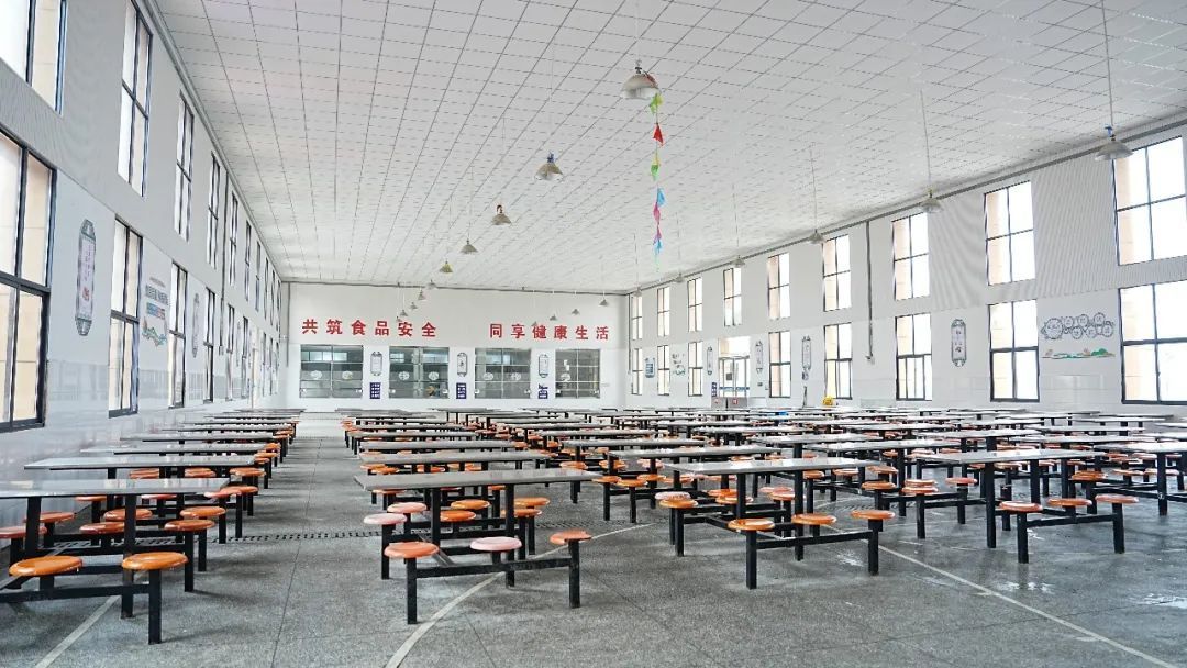 擂鼓墩中心学校位于南郊街道,2019年,初中和小学合并后,现有学生1700余人,用餐和如厕需求紧张。改扩建后,食堂用餐大厅餐桌增加了,后厨操作间更规范了。