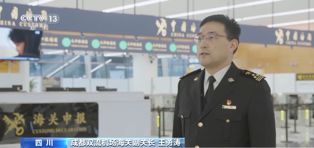 成都双流机场海关副关长 王勇涛:我们海关加大科技装备应用,一体化智能闸机、智能协运机器人和AI2000HS行包货物智审系统3项智能化设备为全国航空口岸首次规模化应用,通关流程更加智能化,进一步提升旅客无感通关体验,为进出境旅客提供便捷高效通关监管服务。