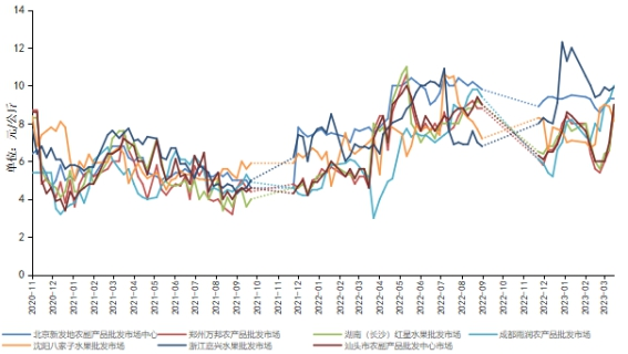 图5 重点批发市场脐橙价格走势