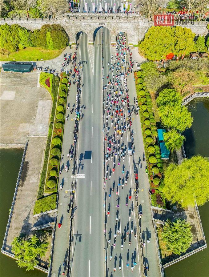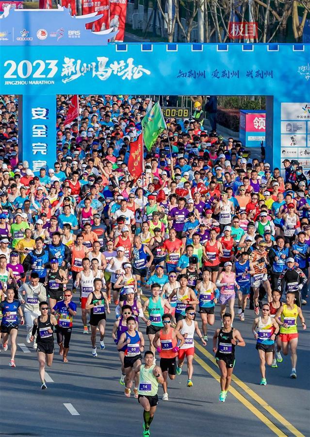 2023荆州马拉松,2万多名选手从荆州体育中心起跑