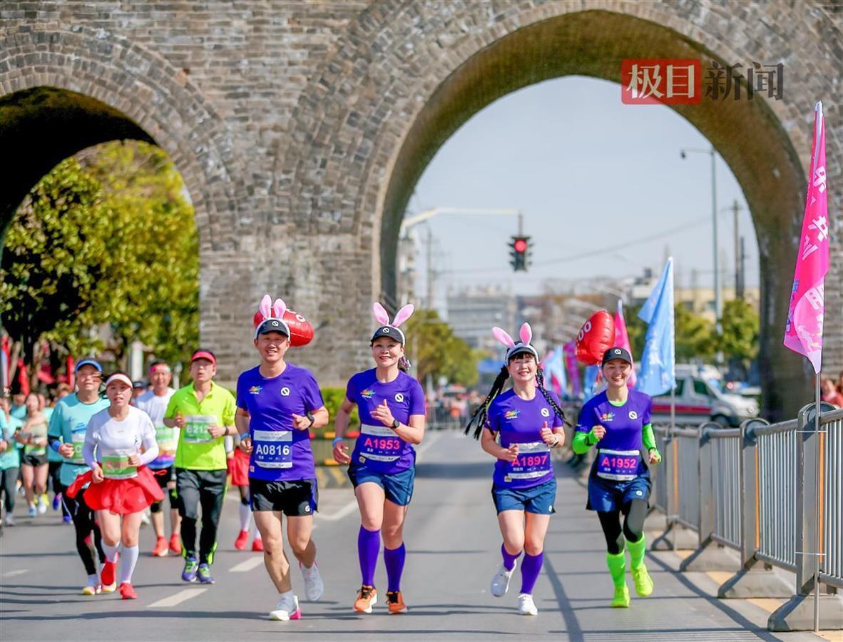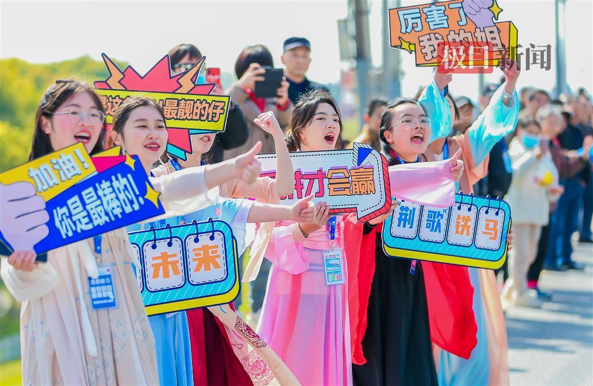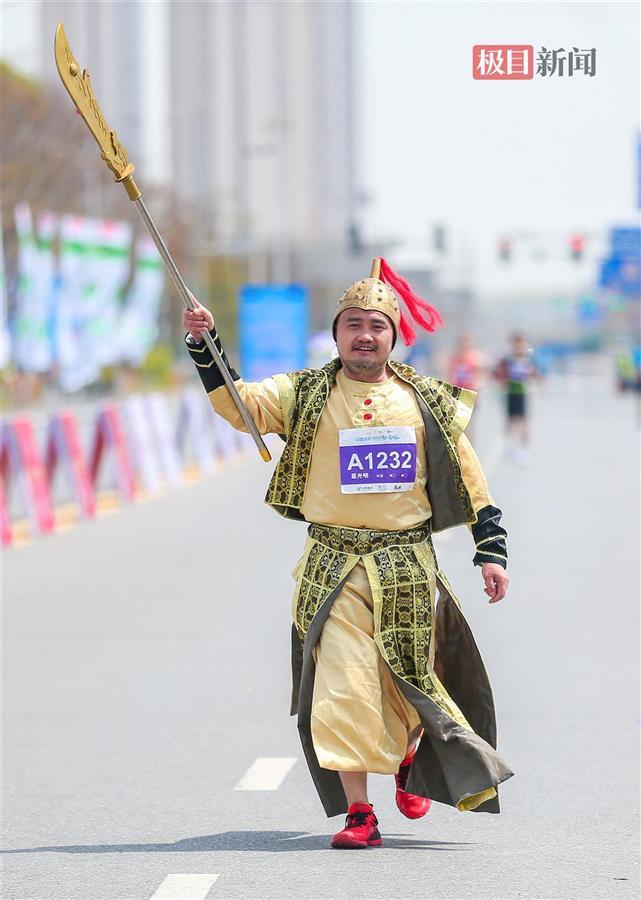 极目新闻记者了解到,本届荆州马拉松赛事氛围热烈、隆重且独具荆楚文化特色。起跑仪式上,50人的cosplay特装方阵,格外吸入眼球;古城东门、新南门及各个项目终点均也有特装人员,营造穿越千年古城、弘扬荆楚文化的浓厚氛围。另外,本届马拉松的奖牌设计也首次采用镶玉设计,凸显楚风古韵。