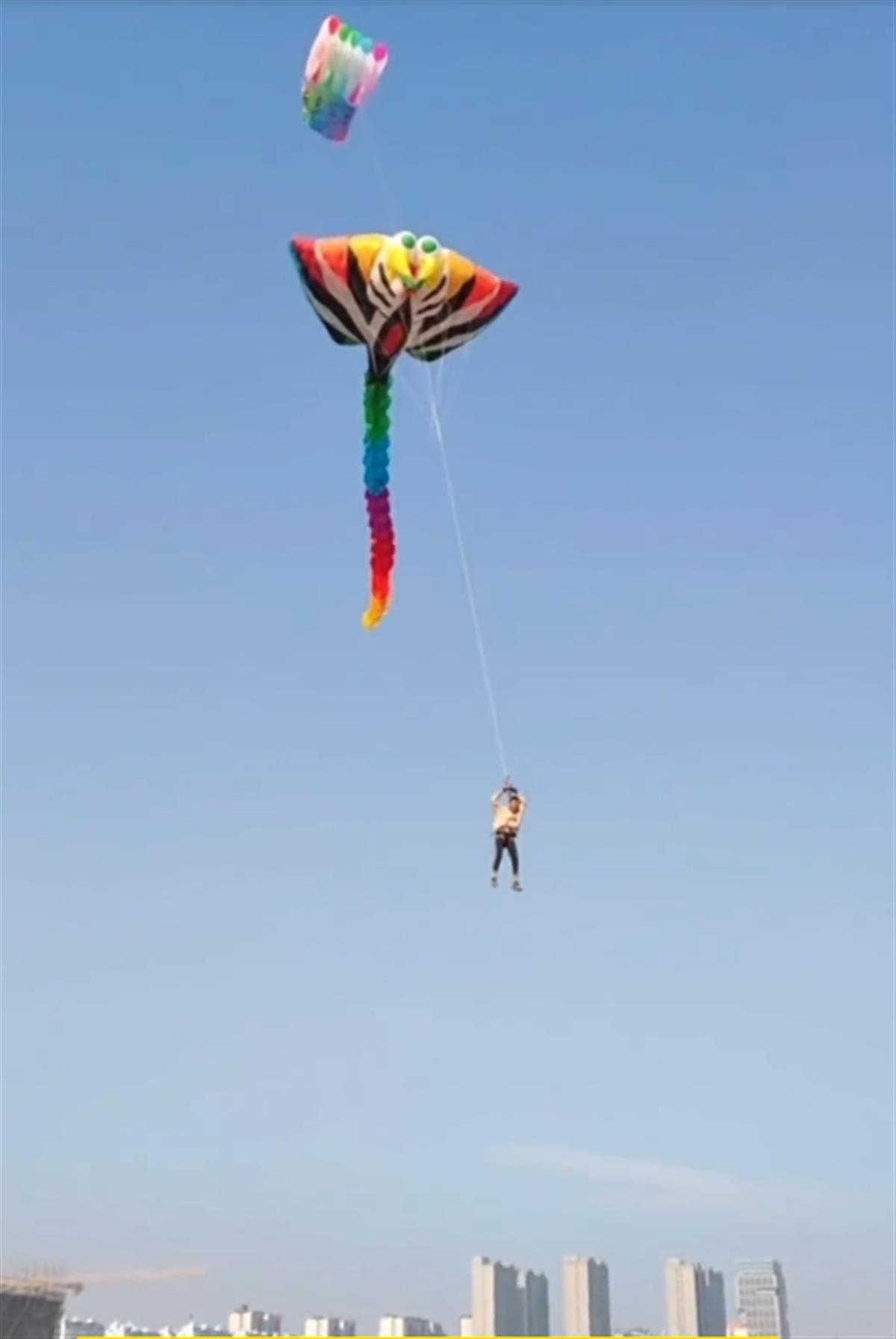 男子被风筝带上天 (视频截图)