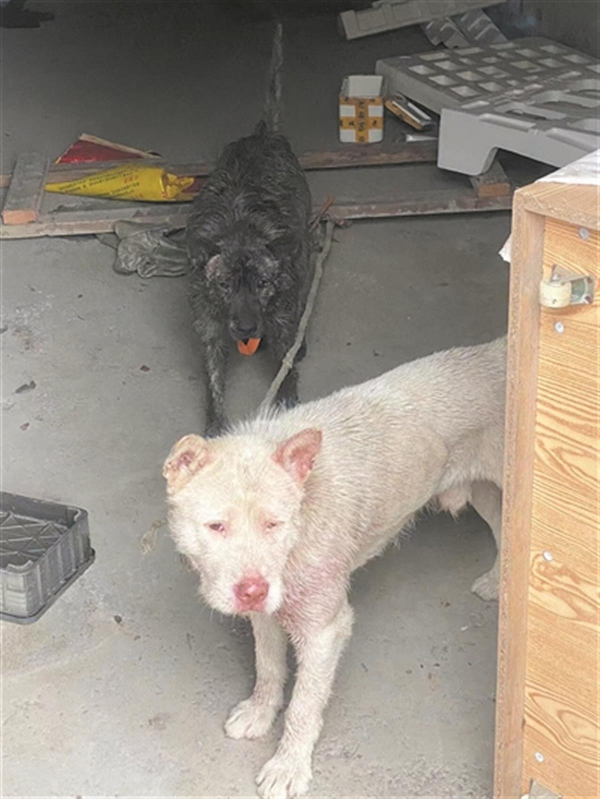 蔡先生说,园区是封闭的,夜晚铁丝网大门上半部分会上锁,下半部分则会用绳子绑好。但现在他们看到,大门下半部分的绳子被解开了,两只狗是从那里进入的。事发后,基地请人辨认两只恶狗,有人说,白色的是下司犬,黑色的是虎斑犬,均属于猎犬。目前,还不知两只狗的主人是谁。