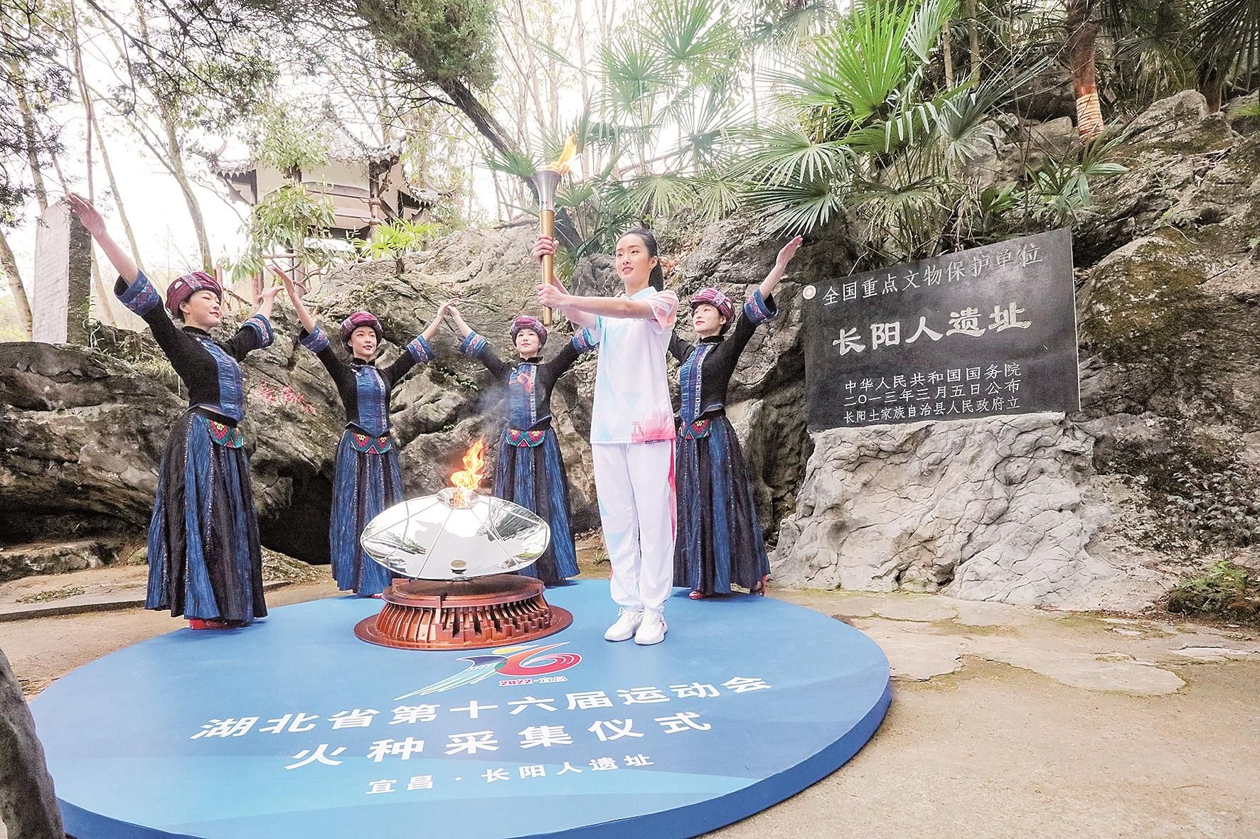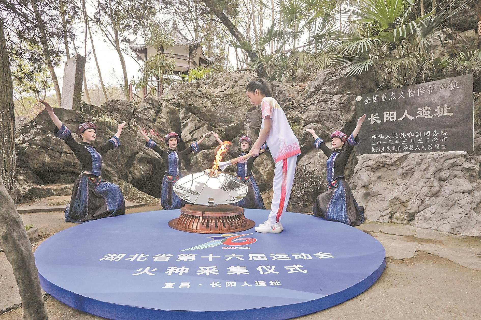 楚天都市报极目新闻讯(记者 刘俊华 徐平 通讯员 刘璐 陈利莉)点燃激情,传递梦想 。3月27日,湖北省第十六届运动会“历史文脉”火种采集仪式在长阳土家族自治县大堰乡钟家湾村长阳人遗址举行,这是本届省运会首个成功采集的火种。