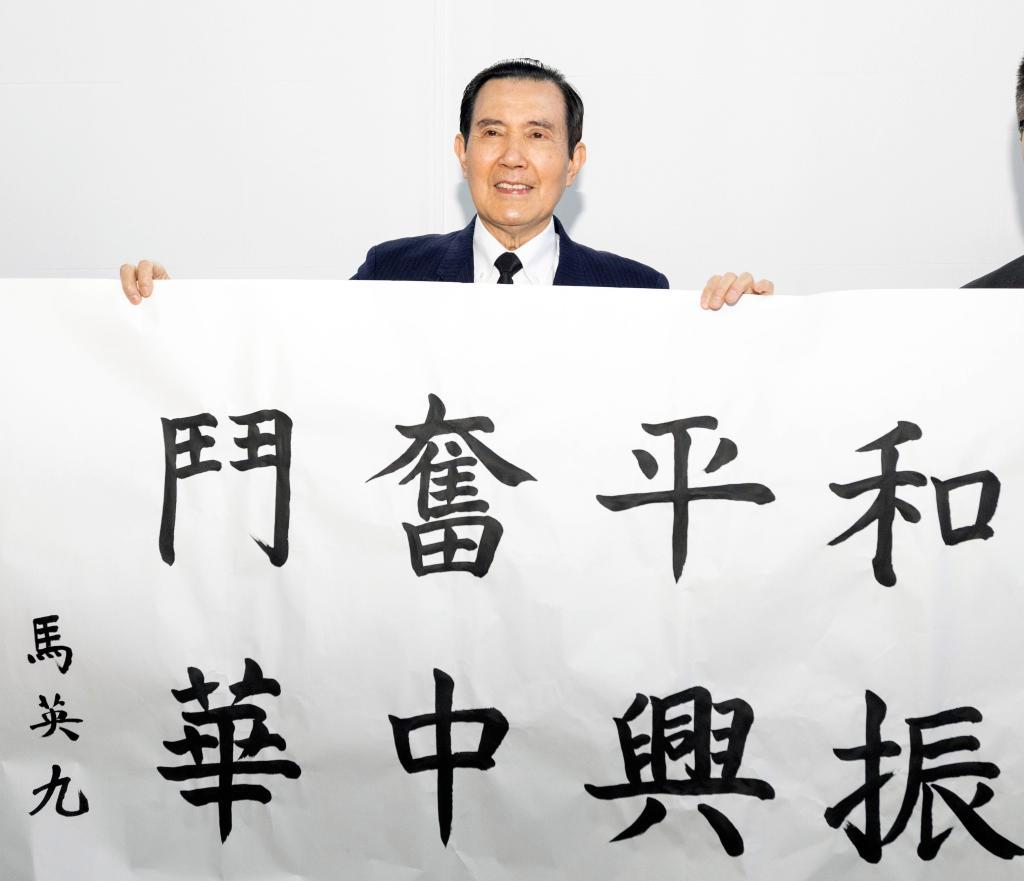3月28日上午,中国国民党前主席马英九一行拜谒南京中山陵。这是在中山陵祭堂耳房,马英九题写“和平奋斗 振兴中华”,以志纪念。