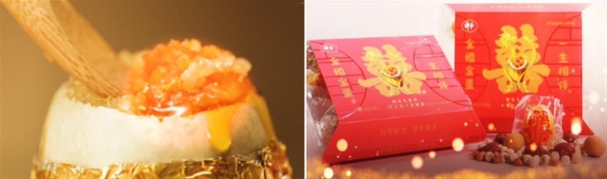 是蛋还是粽?作为本次食材展的“吸睛王”之一,神丹公司在传承传统饮食文化基础上不断推陈出新,将蛋粽巧妙融合,推出炫酷的“金蛋粽”。“金蛋粽”以蛋壳为天然陶罐,将优质糯米和馅料灌入蛋中,再包上金光闪闪的金色外衣,高温蒸煮后,美味与美好在舌尖肆意流淌。