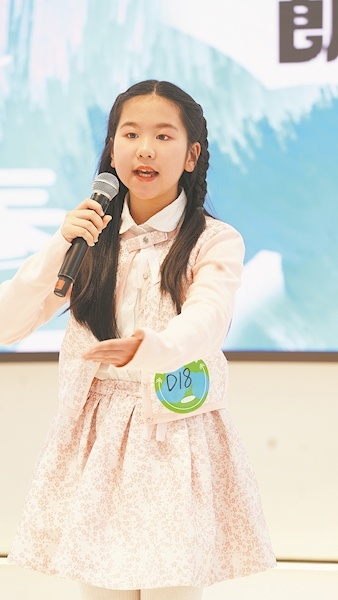 “我想等你换上春装 去看蒹葭苍苍 在水一方 去看竹外桃花 春江水暖……”决赛现场,选手们朗诵关于“春”的诗歌也很多,一首《我想等你换上春装》被低年级组的杨佳乐朗诵得非常唯美。轻柔的音乐、清新的背景,诗中有诗,画面太美了。最终,她也斩获了低年级组二等奖,“明年再来。”杨佳乐说。