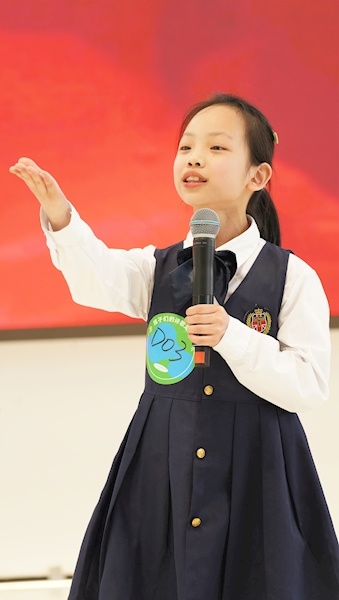在本次决赛中,选手向璟垚除了参加团体赛外,还参加了个人赛。在团体赛中,她与马佳颖、苏晨悦、柯毅晨配合默契,四个人分工合理又犹如一个整体,用一首《秋天里的中国》获得了团体组一等奖。而在个人赛中,向璟垚朗诵了一首《如果信仰有颜色》获低年级组二等奖。“略有小遗憾,明年再来。”