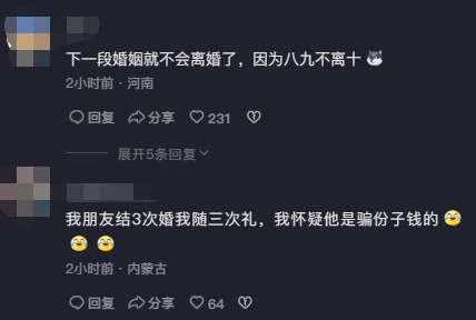 对此,网友表示男子是民政局的超级VIP,不少网友也疑惑可以结婚离婚这么多次吗?