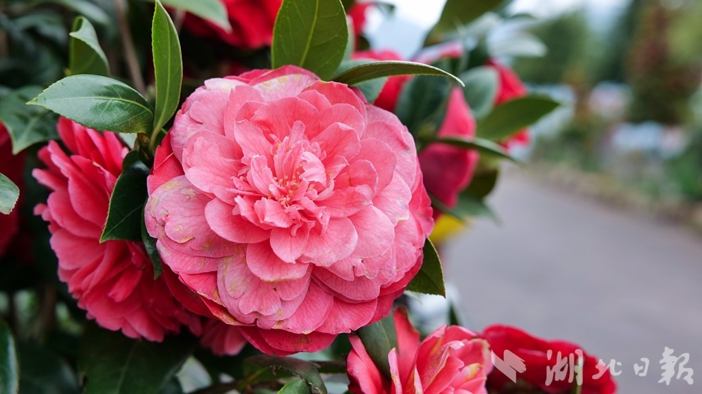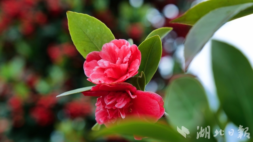 花姿绰约,漫山明艳。3月28日,建始县三里乡藤茶基地四季茶花竞相绽放,茶花点缀在绿叶之间,红的似火,粉的似霞。