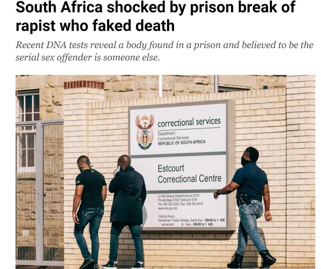据卡塔尔半岛电视台报道,近日,南非警方表示,他们已对一名被定罪的强奸犯展开追捕行动。这名强奸犯伪造自己死亡,大胆越狱,全国震惊。
