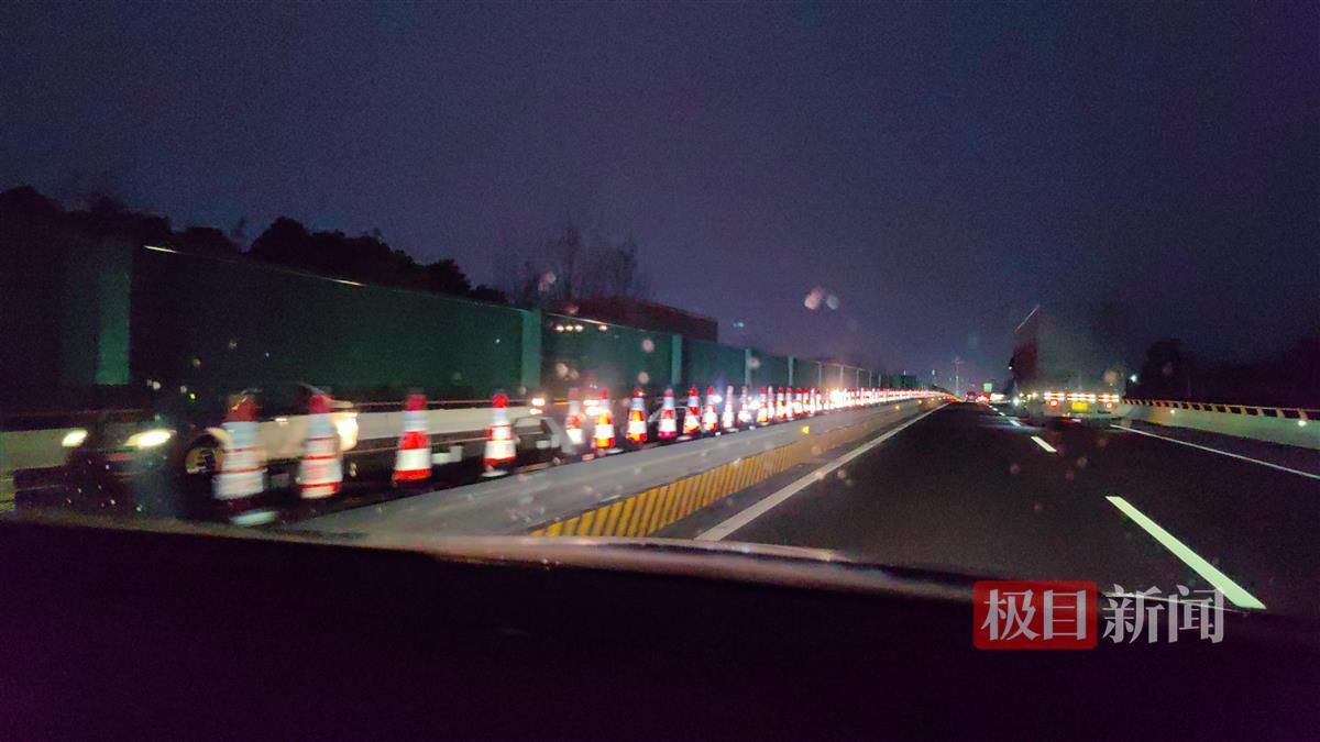 3月29日晚,极目新闻记者实地探访并采访车主了解到,目前整改工作仍在进行中,部分路段已经进行了防眩网加装,还有部分路段临时设置了路锥。