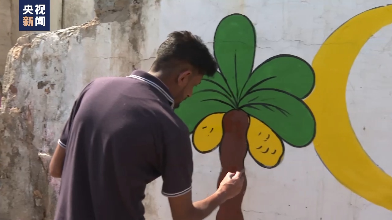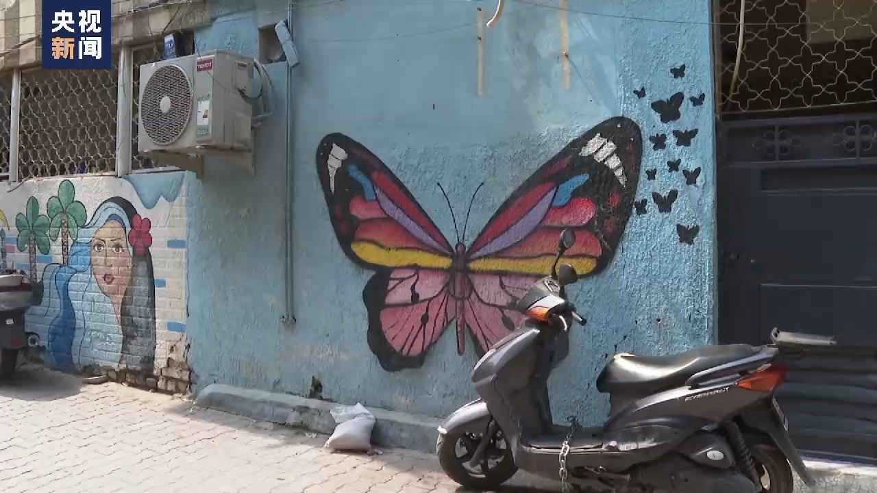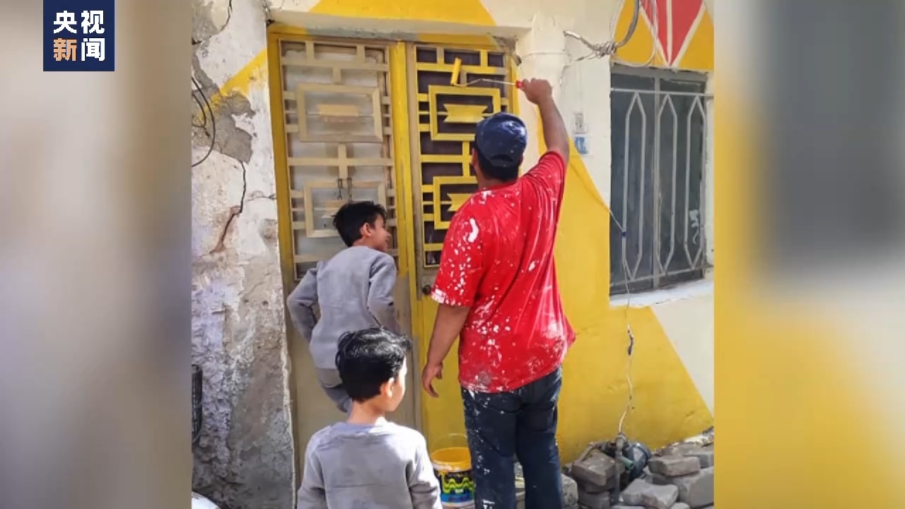 总台记者见到“蝴蝶效应”志愿者小组的时候,他们正在巴格达卡兹米亚地区的一条小巷子里画画。房子的主人几个月前联系他们,请他们为自己家的外墙创作一副壁画。