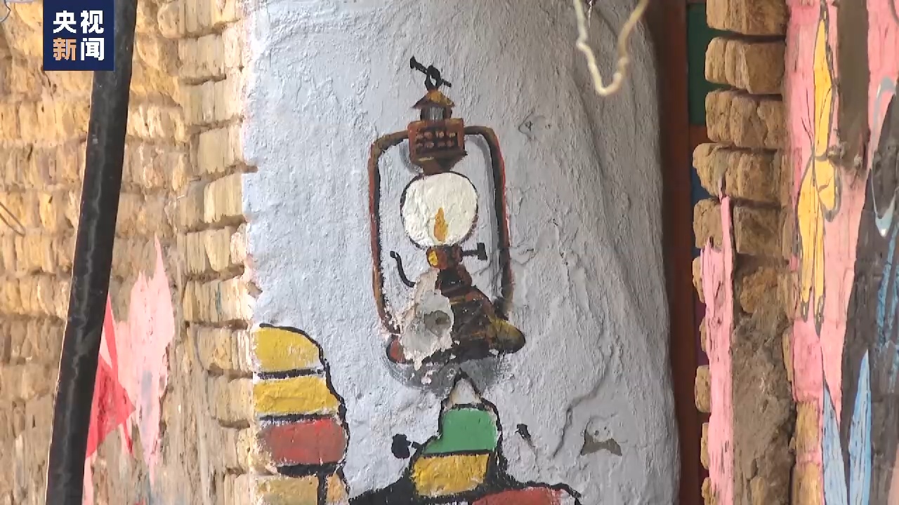 “蝴蝶效应”志愿者小组创始人 阿里·哈里发:这片区域是贫民窟,画中这个小女孩望向窗外,象征着住在这里的孩子在向往着自由与远方。