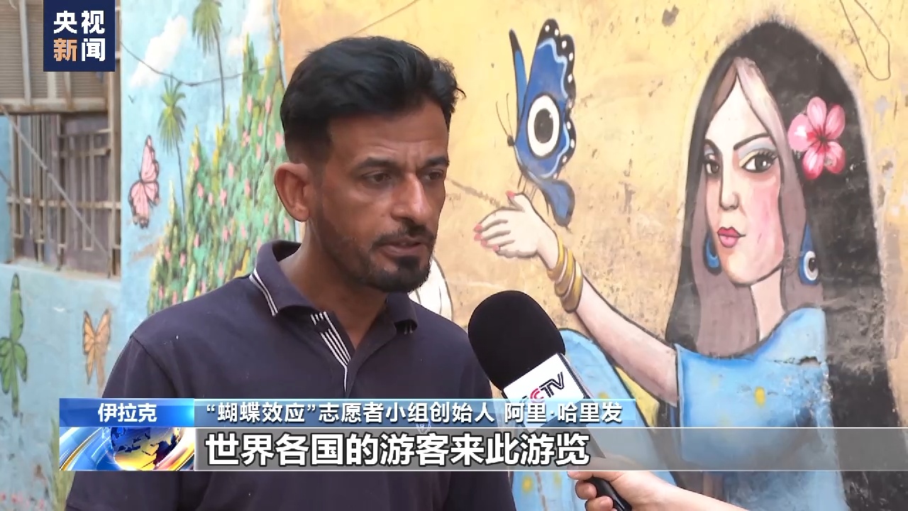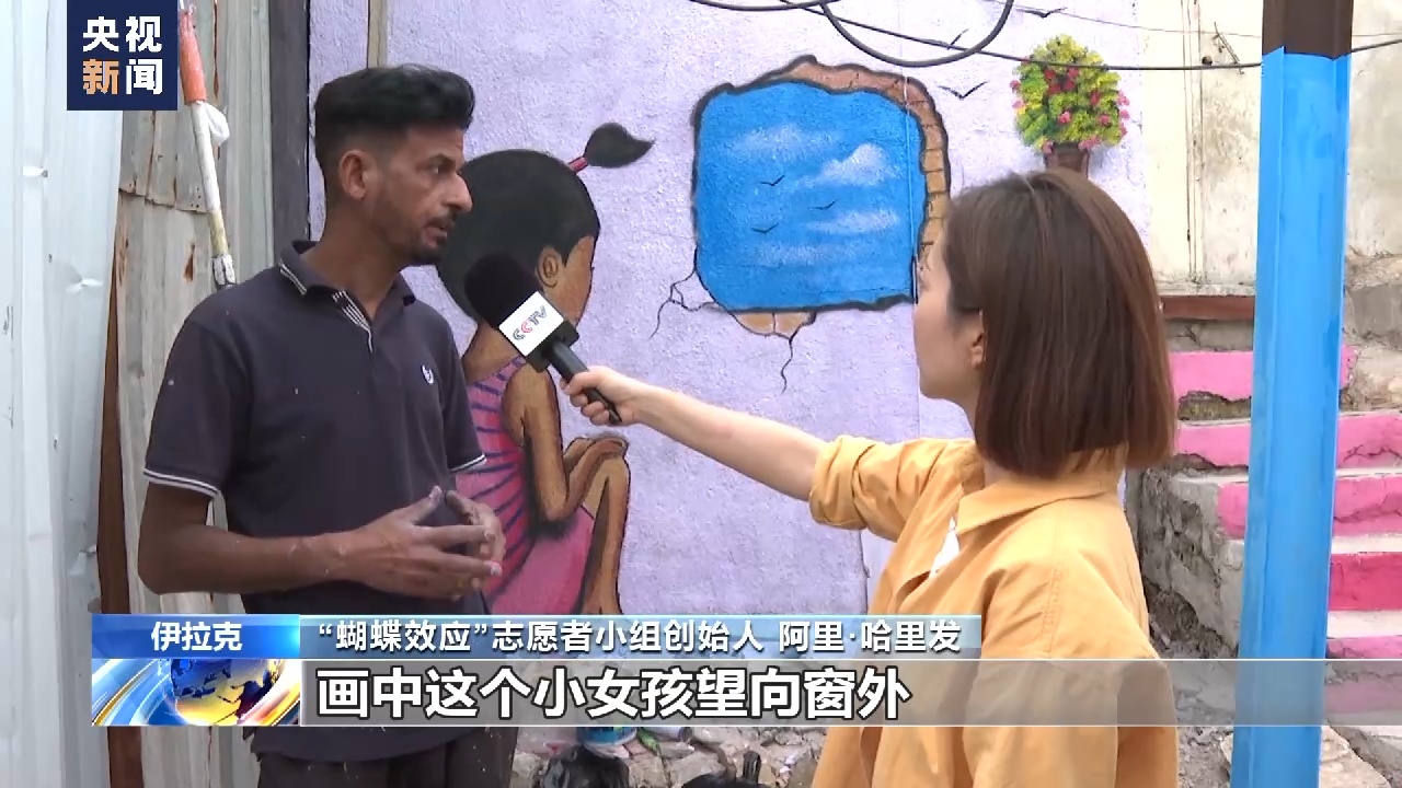 “蝴蝶效应”志愿者小组创始人 阿里·哈里发:我们画了这些壁画,或许就能帮助减少暴力事件的发生,这些壁画能给人一种良好的心理(暗示)。当人们,特别是孩子们,看到这里因为这些壁画发生了改变,这对整个社会都是有意义的。