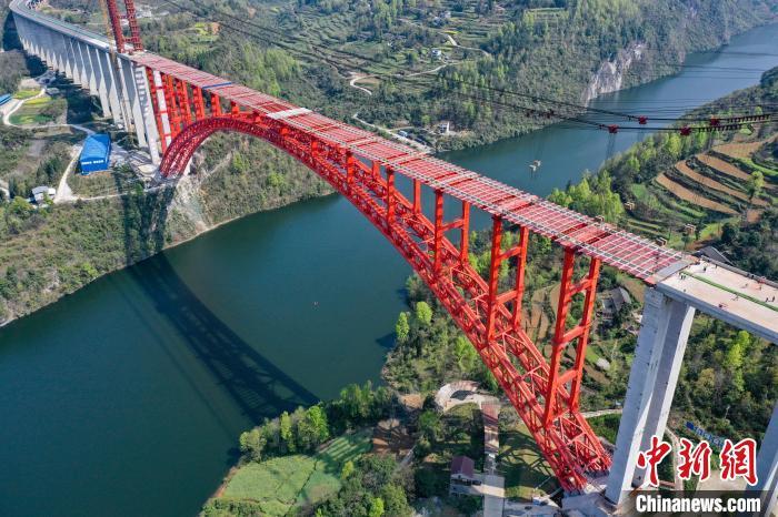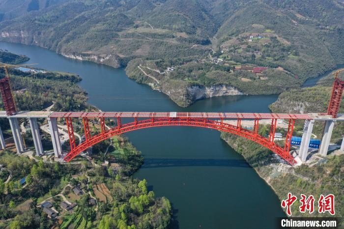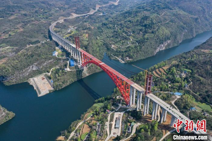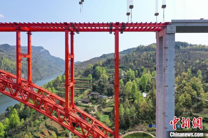 图为航拍主体贯通的乌江特大桥。 瞿宏伦 摄