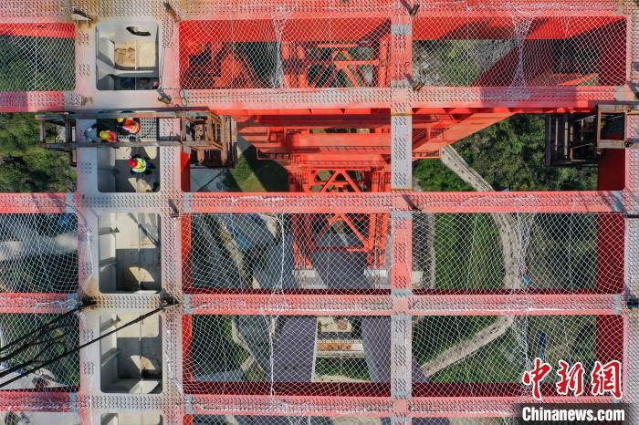 图为航拍重达180余吨的桥面梁吊装完成。 瞿宏伦 摄
