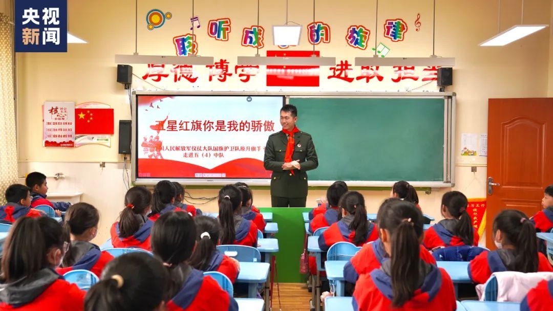 最近,张自轩走进校园,为当地多所学校的国旗班进行指导。他还分享了自己担任升旗手的训练经历,向他们传递对于祖国和国旗的忠诚与热爱,受到热烈欢迎。