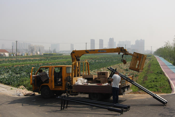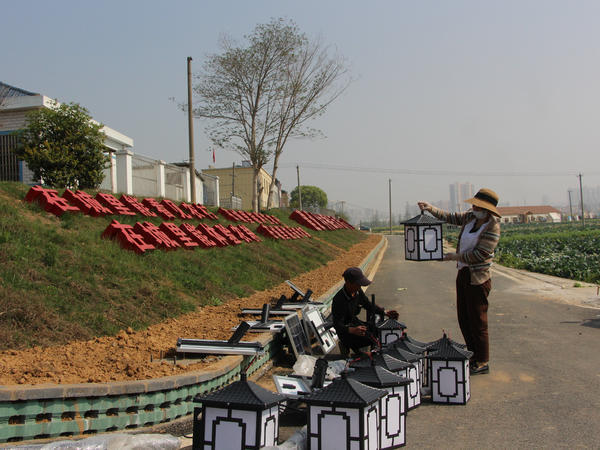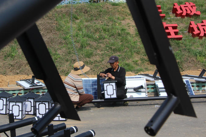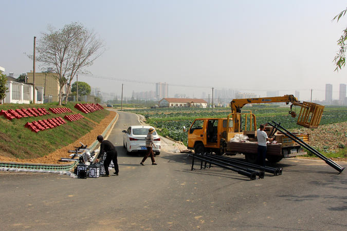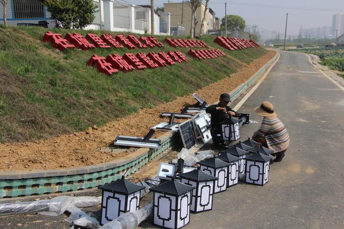 湖北日报客户端讯(通讯员 王芬 喻冬琴 陈保忠 )4月1日,路灯工人在云梦县城关镇“铁西”白合村安装太阳能路灯,点亮乡村振兴路。
